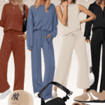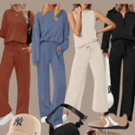- Lounge Sets Mock Neck Tops Wide Leg Crop Pants – A matching set always feels chic, and this mock neck top with wide leg pants delivers both style and comfort. The cropped design makes it ideal for warmer days or layering, and it’s versatile enough to dress up or down.